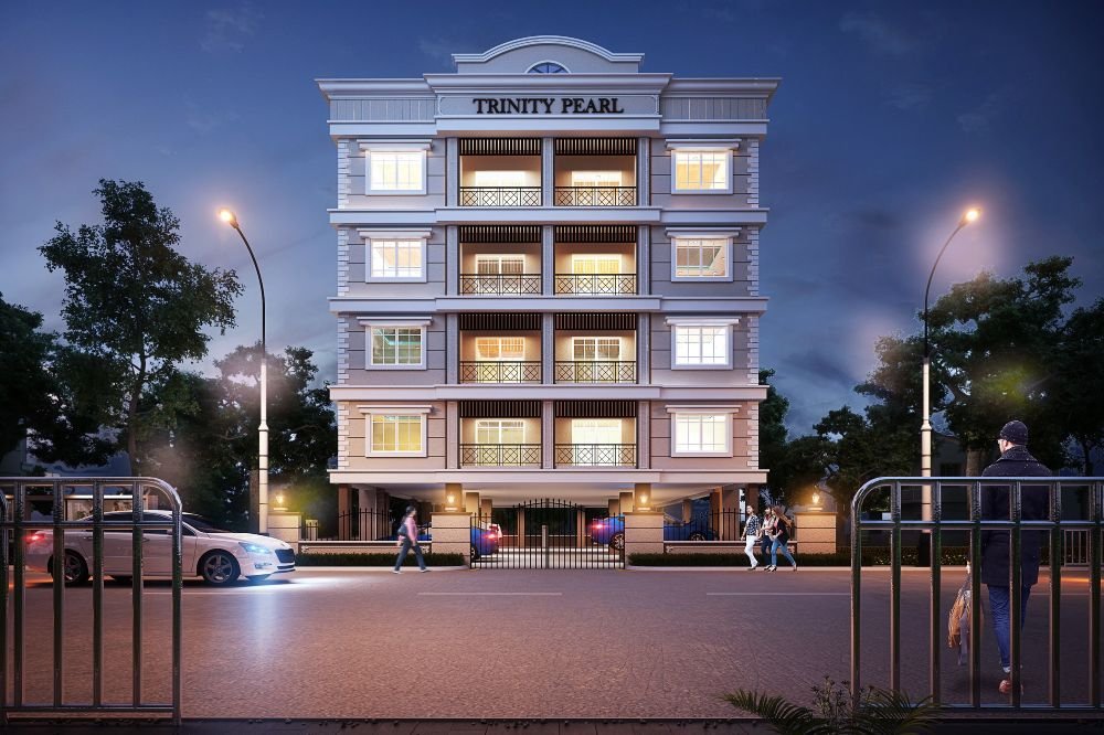 Our latest offering Trinity Pearl builds on the legacy created by our previous projects KALINGA and CRYSTAL at Kalinga Nagar, Bhubaneswar. It is a true amalgamation of thoughtful planning, space, luxurious finishes & excellent location. This project consists of a collection of twelve premium flats (11 units of 3 Bhk and 1 unit of 2 Bhk) that have been crafted with all modern amenities in mind, complementing the designer homes with exclusive amenities like terrace garden, ample parking and landscaping to name a few. The building is centrally located at Kalinga Nagar alongside leading medical and educational institutions like Sum Hospital, DAV schools and C.E.T College to name a few. TRINITY PEARL welcomes you to be a part of a truly integrated lifestyle that is meant for a select few !!!